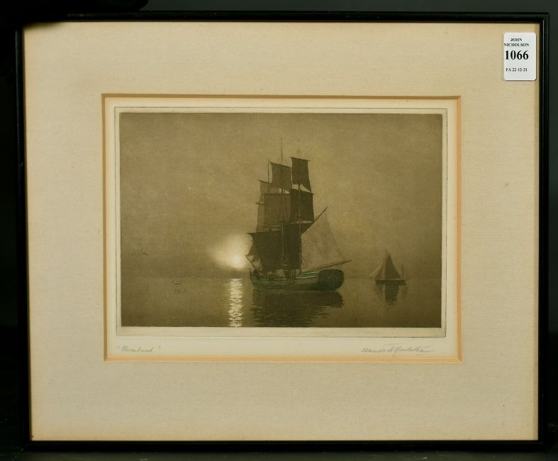 Claude Rowbotham (1864-1949) 'Becalmed', colour printed etching, signed in pencil, 6" x 9".