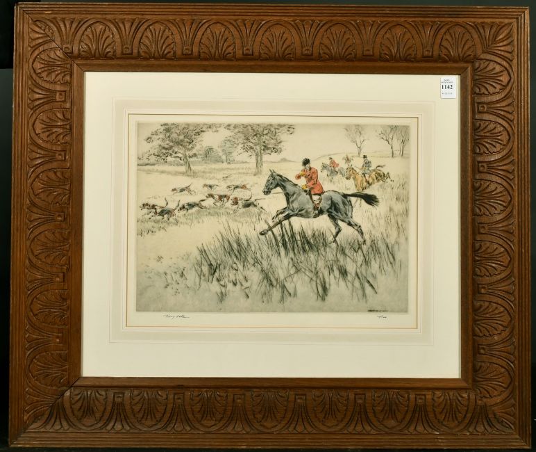 Henry Wilkinson (1921-2011) British, Huntsman and hounds giving chase, etching, inscribed signed and numbered '75/100', 12" x 16.5".