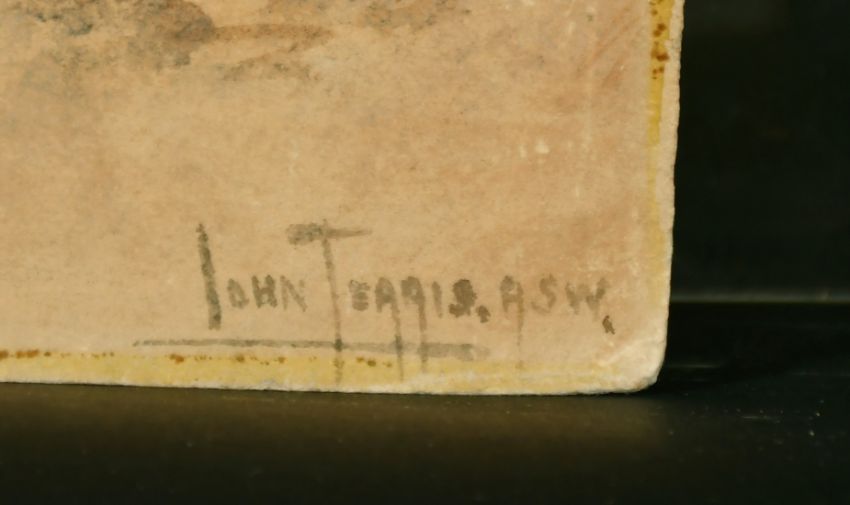 John Terris, 'Shere Village, Surrey', figures outside a terrace of houses, watercolour, signed, 9.75" x 13.75", (unframed).