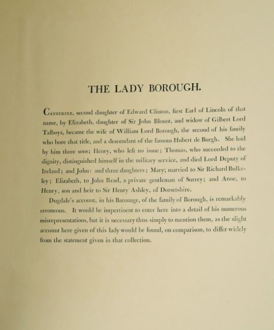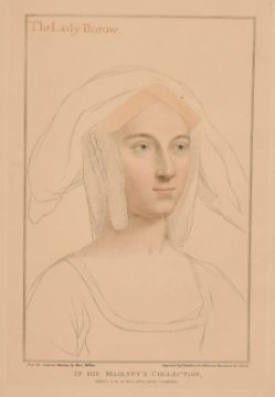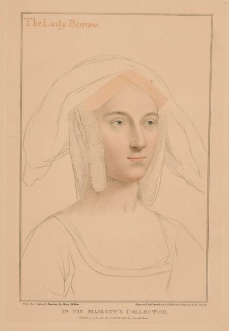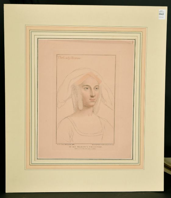 Lloyd Bartolozzi after Holbien, 'The Lady Burrow' With accompanying texts, 13" x 9", (unframed).