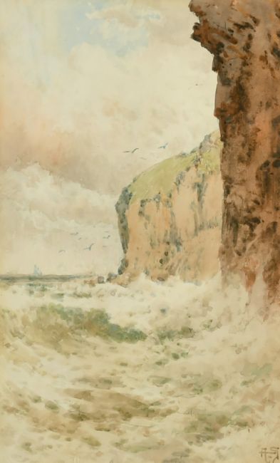 Arthur Suker (1857-1902) British. A Coastal Landscape, watercolour, signed with monogram, 9.5" x 6".