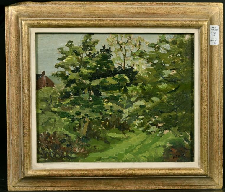 Hugh Boycott Brown (1909-1990) British, two landscape views, one featuring a church, oil on board, signed with initials, one 8.5" x 10" the other (Church) 7" x 9",(2).