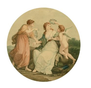 Pollard after Angelica Kauffman, 'Beauty', colour stipple engraving, 12.75" diameter.