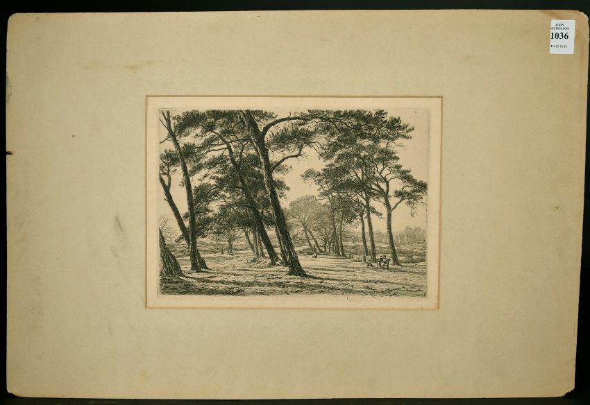Circle of Whistler, Figures in a park, engraving, 7" x 10", (unframed).