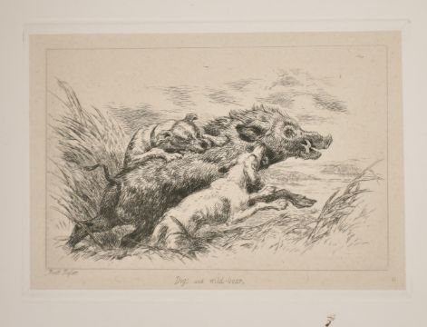 A collection of seven Old Master engravings featuring animals, along with a 19th Century Engraving of Wild Boar, (8) (unframed).