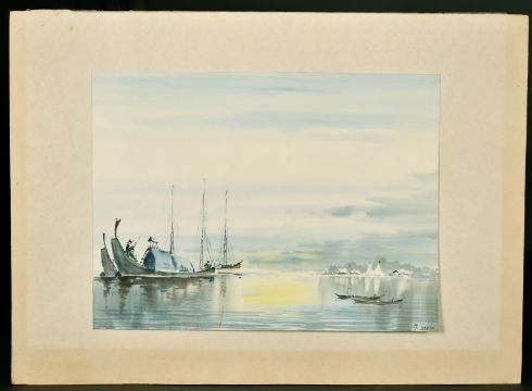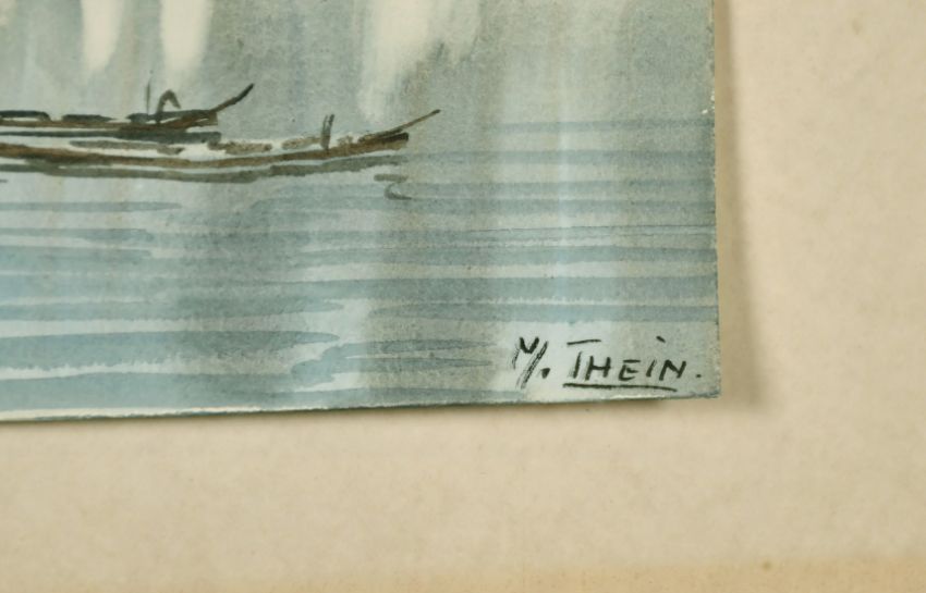M. Thein, A pair of watercolours, 'Moonlight and Mandalay Burma' 8.5" x 13.5" and 'On the Irrawaddy River Burma',10.75" x 14.25", both signed, inscribed on reverses of support, (unframed) (2).