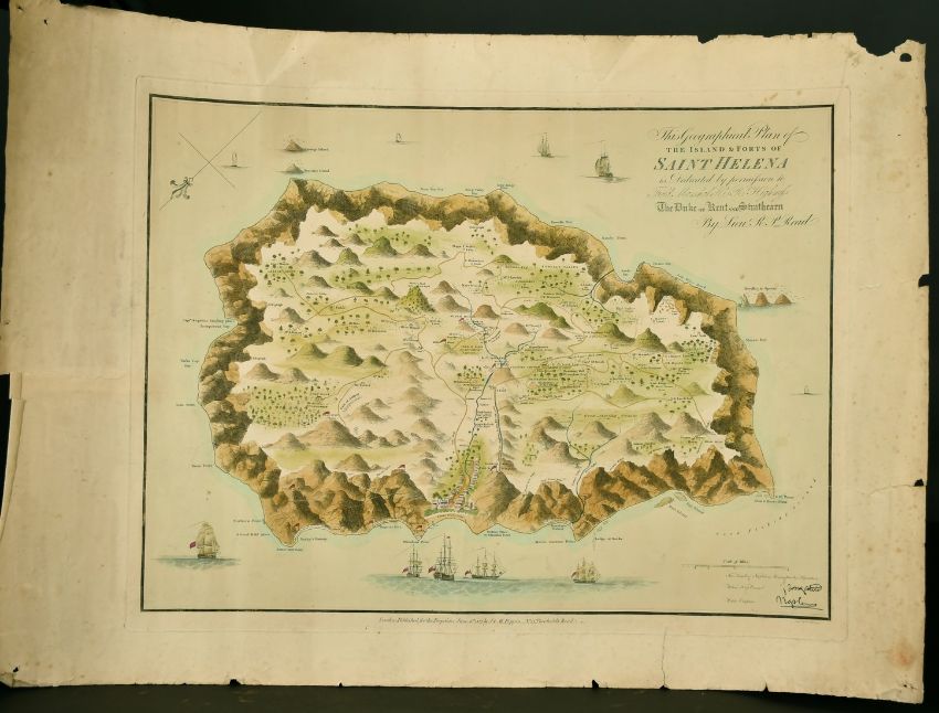 A collection of maps and plans including 'The Island and Forts of Saint Helena' circa 1817, unframed (Qty).