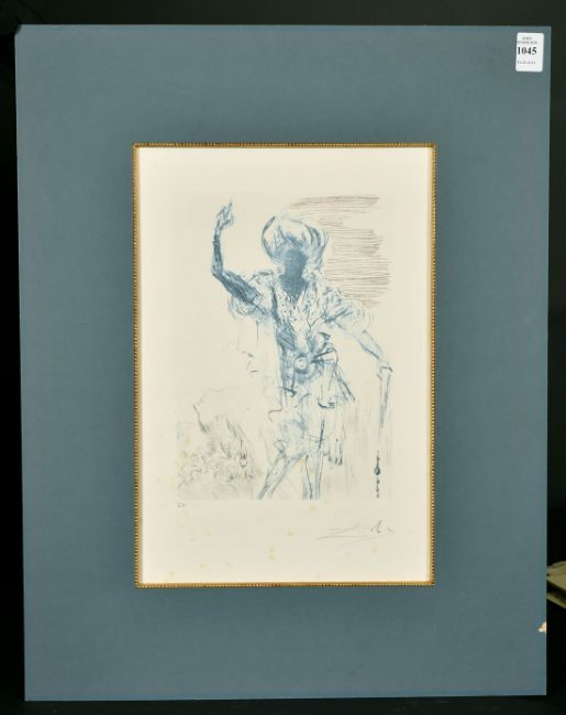 After Salvador Dali, A scene of a figure in a turban, A colour print, 10" x 7", (unframed).