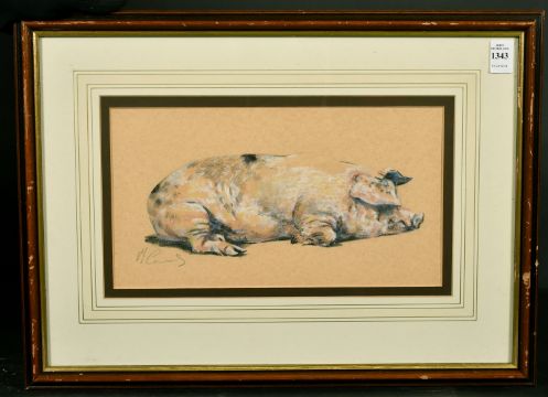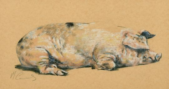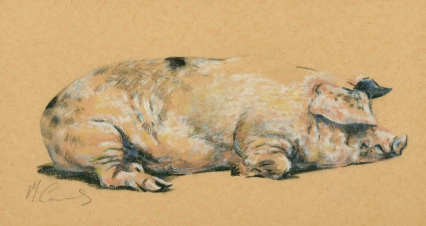 Malcolm Coward (b.1948) British, A sleeping pig, charcoal and watercolour/gouache, signed in pencil, 6.75" x 12.5".