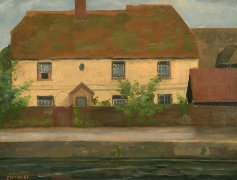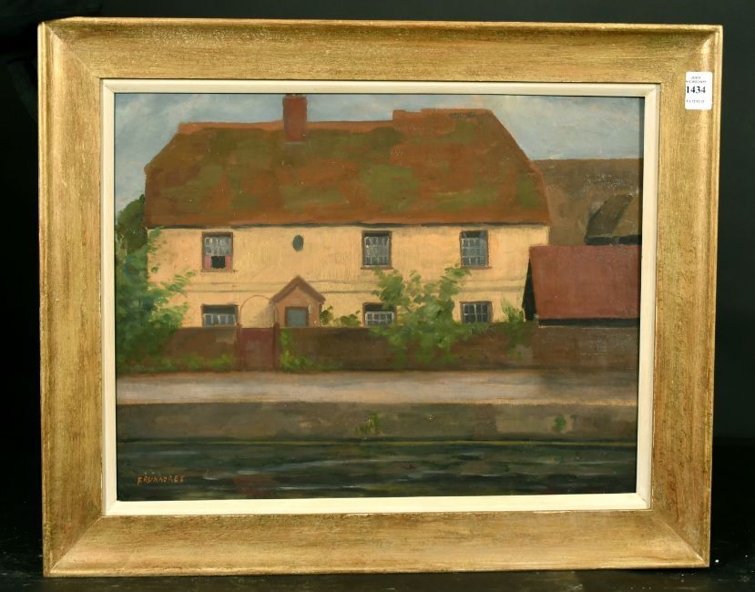 Frank Runacres (1904-1974) British, a view of a cottage by a stream, oil on panel, signed, 14" x 18".