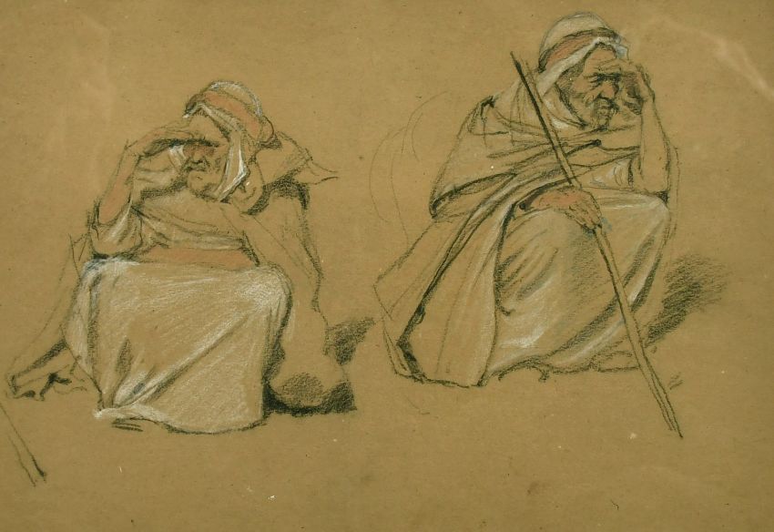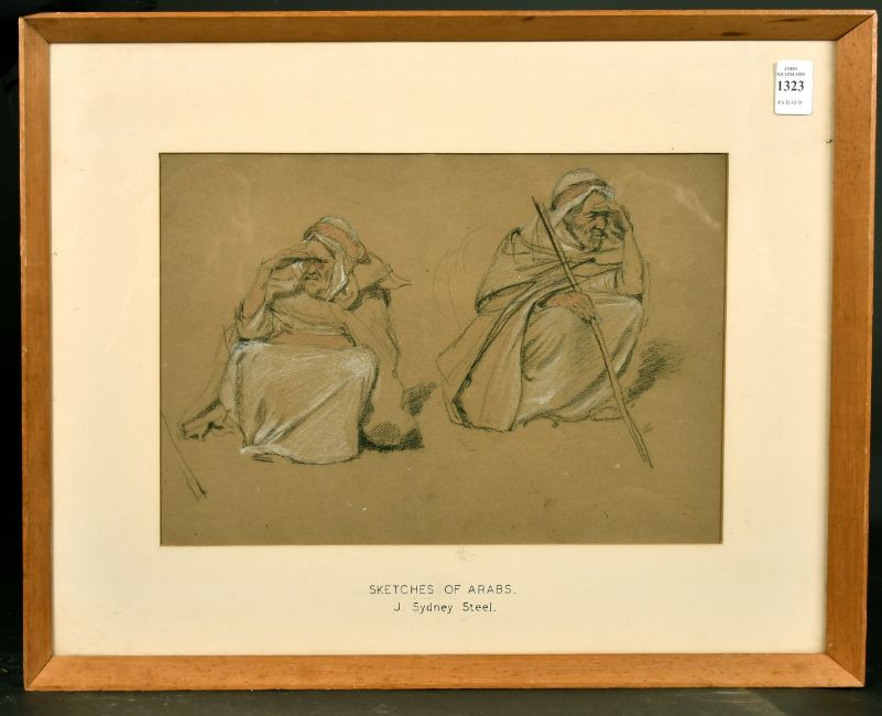 John Sydney Steel (1863-1932), 'Sketches of Arabs', a study of two figures, pastel, 9" x 13".