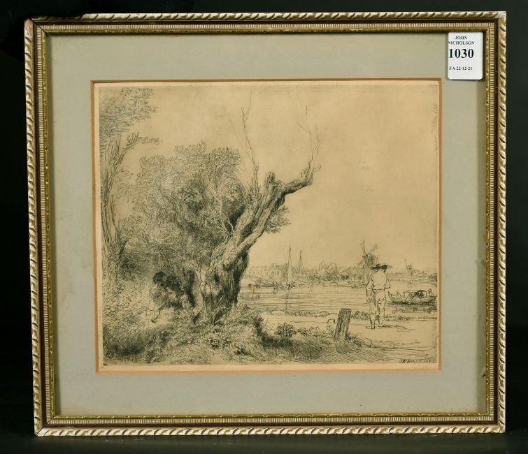 After Rembrandt, 'The Omval, print, 7" x 8.5".