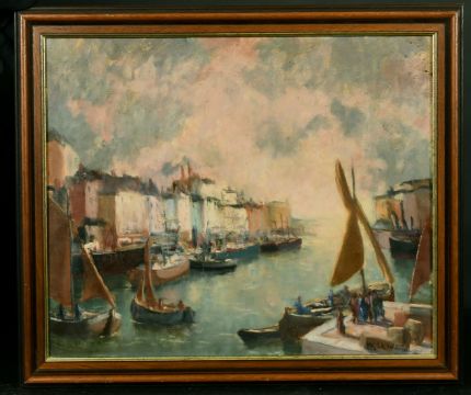 W. Le Wino (Walter Beauvais), 'A harbour', oil on canvas, signed and inscribed verso, 17.5" x 21.5".