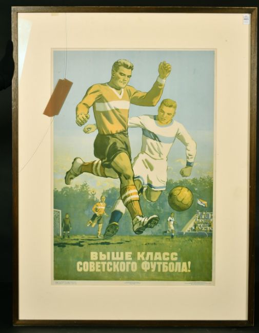 Russian, Circa 1954, a framed poster advertising a football tournament, 31.5" x 22".