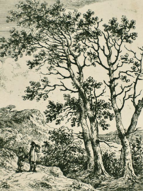 Circle of John Crome, two travellers in a wooded landscape, etching, numbered '10', 4.25" x 3.25", (unframed).