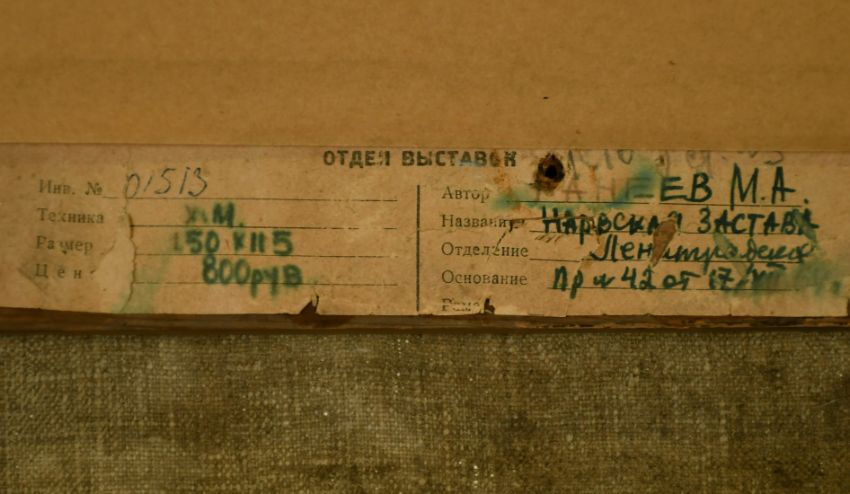 Mikhail Kaneev (1923-1983) Russian, The Narvskye Gates in Leningrad, oil on canvas, 59" x 45.5".