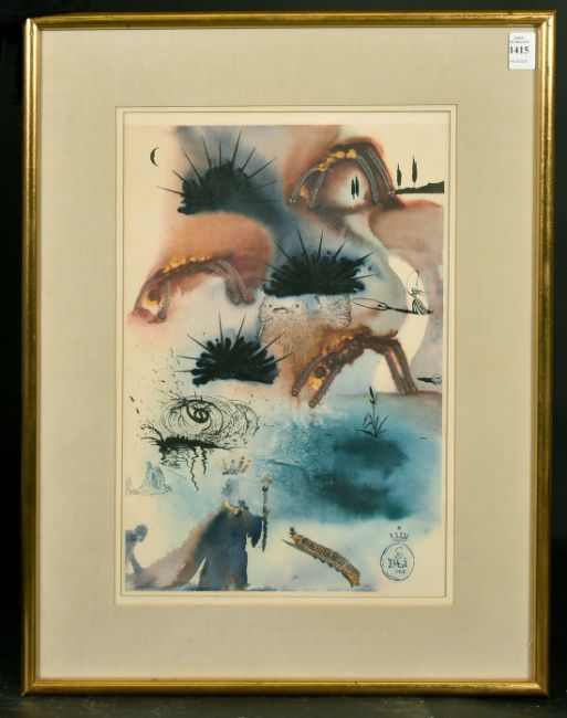 Salvador Dali, an illustration from Alice in Wonderland, 'The Lobster Quadrille',  mixed technique printing, 16" x 11".