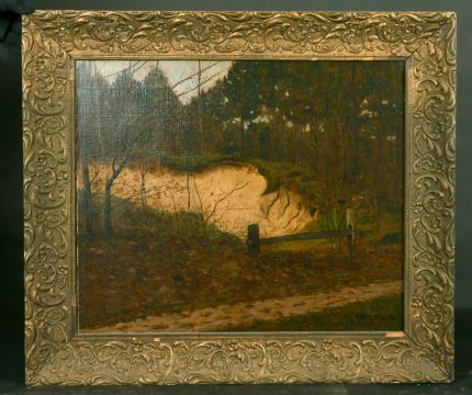 Albert Moulle (b.1861) French, a track through a wood, oil on canvas, signed, 18" x 21.5".