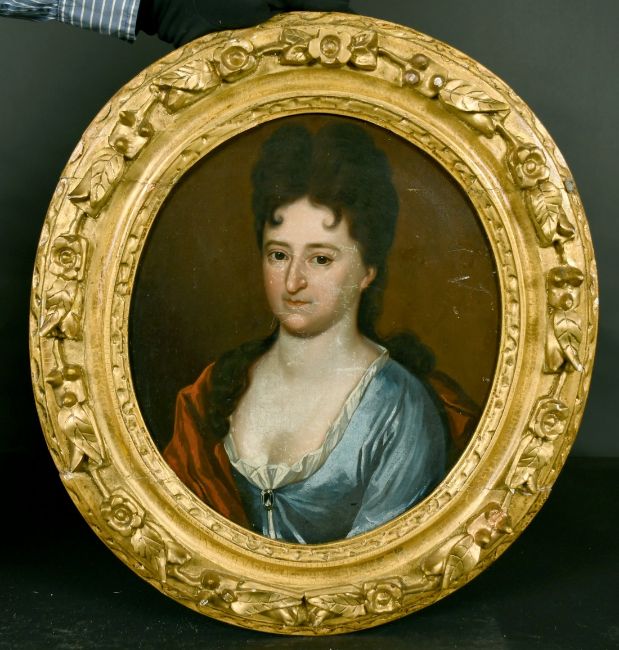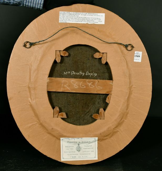 18th Century English School, A bust length portrait of a lady, oil on canvas, 14" x 12", oval.