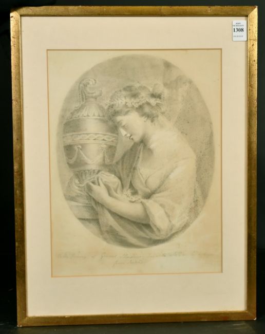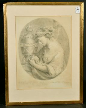 Attributed to G.B Cipriani (1727-1785) Italian, A young woman with an urn, grey wash drawing, inscribed indistinctly, 13.5" x 10.5".