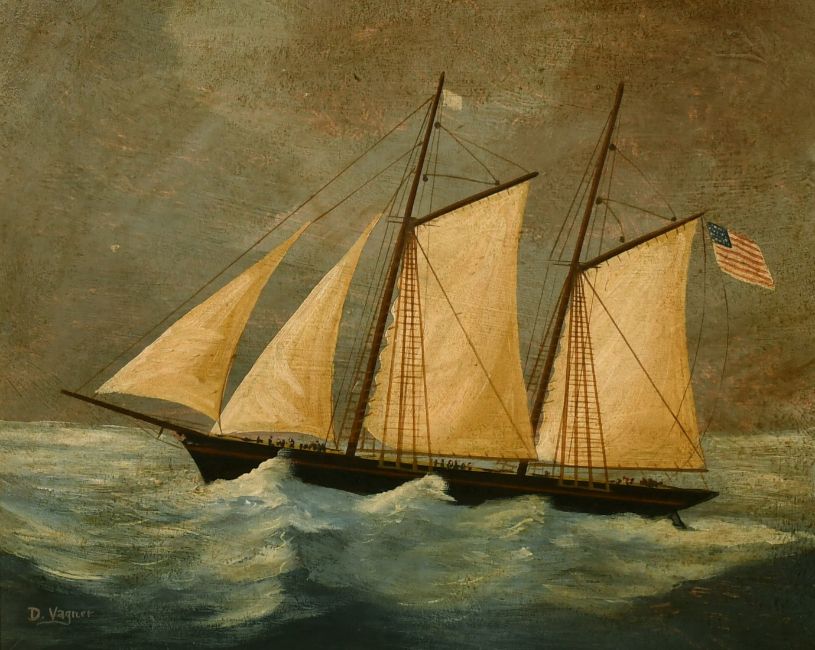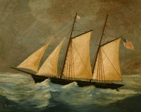 Late 19th/Early 20th Century School, a study of a schooner carrying the American Flag, oil on board, signed D. Vagner, 14" x 17".