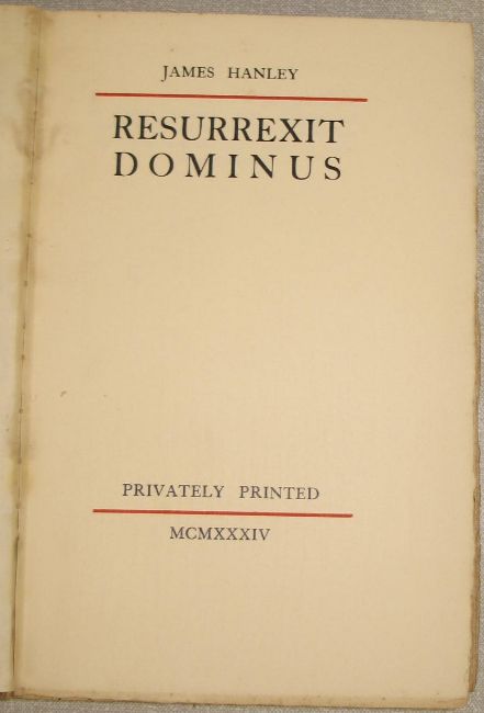 [BANNED NOVEL] HANLEY (James) Resurrexit Dominus, 8vo, disbound, SIGNED Limited Edn. of 99 copies, Privately Printed, 1934.