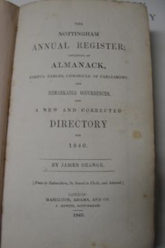 ORANGE (J.) The Nottingham Annual Register...Directory, 12mo, clo., L., 1840.