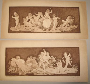 [PRINTS] BARTOLOZZI (F.) / KAUFFMAN (A.) pair of unframed engr. / aquatint scenes of putti, 6.5 x 14 inches.