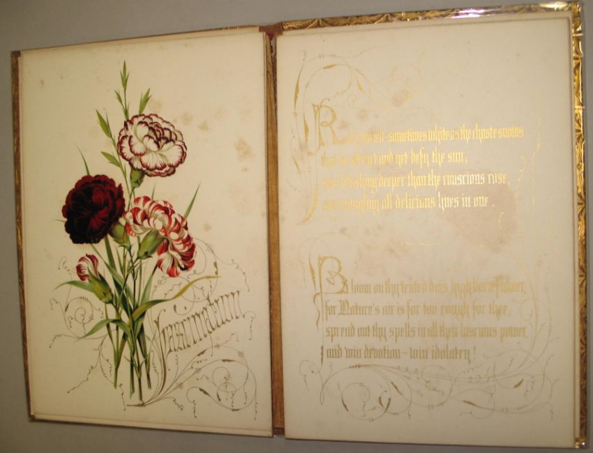 JONES (Owen) & BACON (Mary) Flowers and their Kindred Thoughts, sm. folio, 18 ff., chromolithograph illus., relievo calf binding by Edmonds & Remnants, (contents fine but loose), L., 1848.