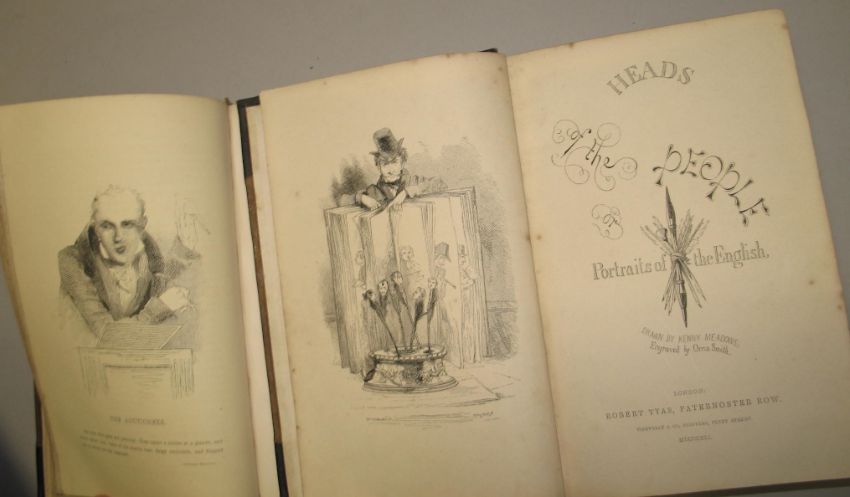 THACKERAY (W.), LEIGH HUNT, & other authors; MEADOWS (Kenny) artist: Heads of the People, or, Portraits of the English, [First & Second Series], 2 vols, 8vo, 2 frontispieces & add. pictorial titles, 105 plates, contemp. half calf, 1st Edns., L., 1840, 1841 (2).
