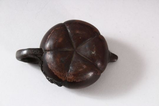 A CHINESE YIXING FLUTED TEAPOT AND COVER, the inner cover with marks, 10.5cm (spout to handle).