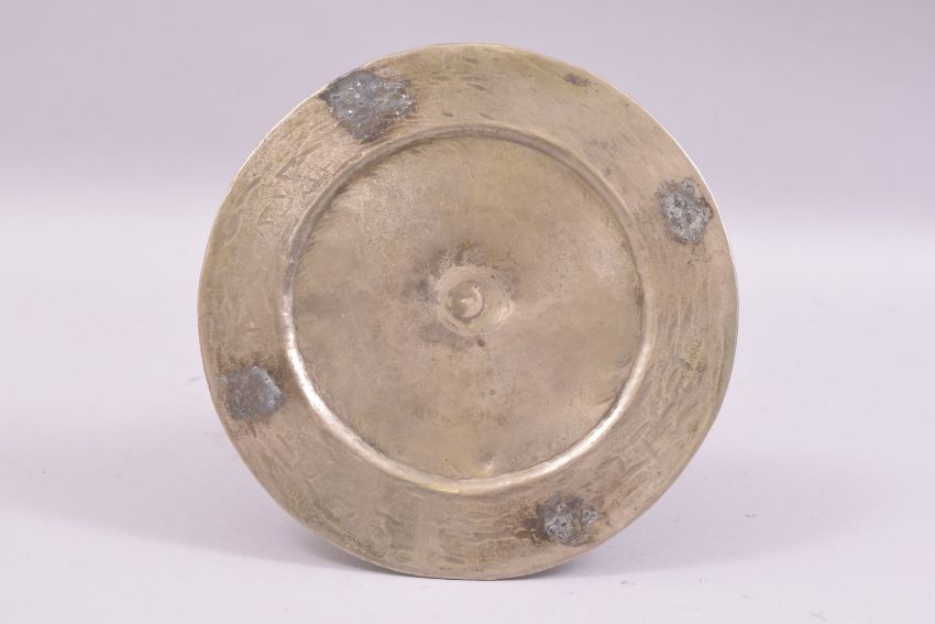 A 19TH CENTURY INDIAN LUCKNOW WHITE METAL / POSSIBLY SILVER HUQQA BASE, with bands of floral motifs to the upper and lower sections, 19cm high, weight 690g.