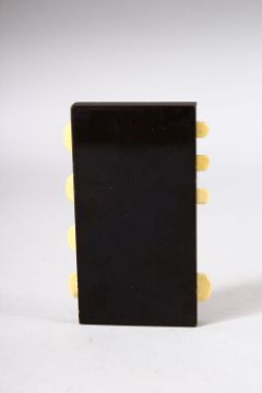 A JAPANESE EBONY, IVORY AND SHIBIYAMA BEZIQUE GAMES MARKER, with inlaid ivory depicting insects, the case with shibiyama flowers, 9cm x 6cm.