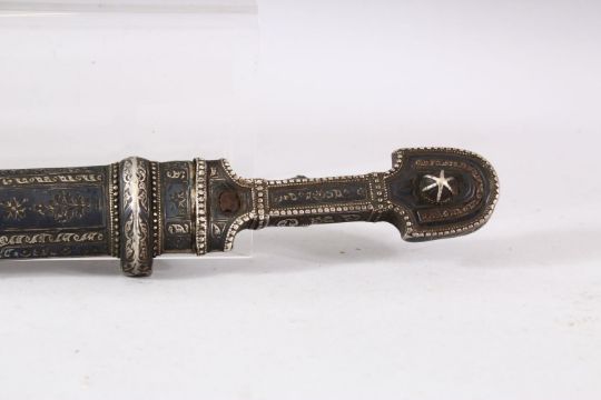 A 19TH CENTURY KINDJAL DAGGER and scabbard, 49cm long.