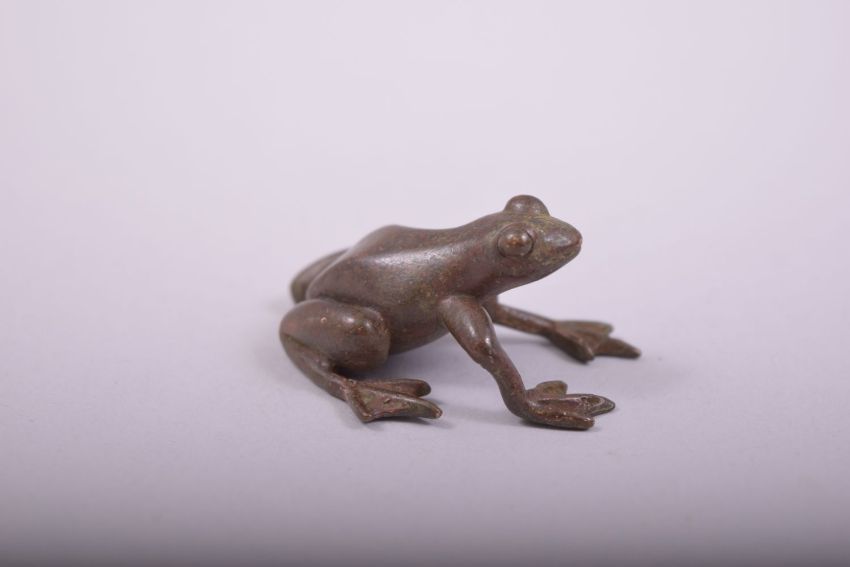 A SMALL JAPANESE BRONZE MODEL OF A FROG, stamped underside, 4cm long.