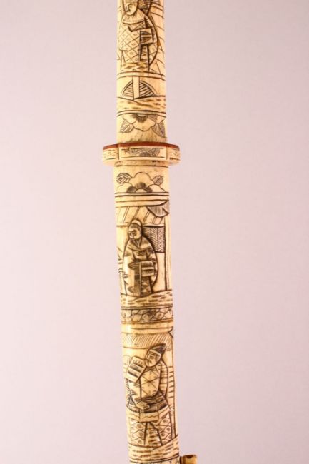 A JAPANESE MEIJI PERIOD SECTIONAL CARVED IVORY SWORD, carved with scenes of figures (AF) 85cm