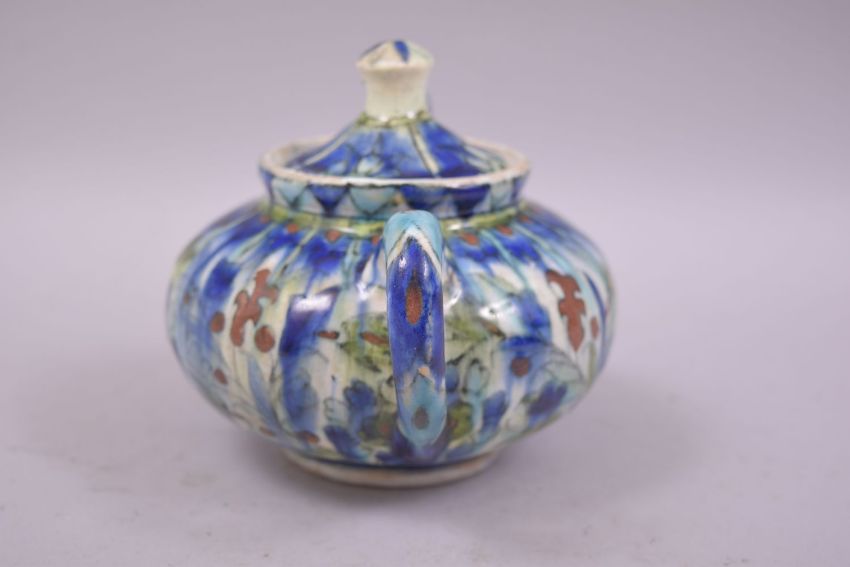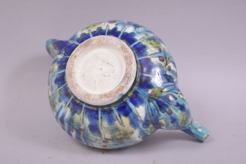 A JERUSALUM GLAZED POTTERY TEA POT, 19cm wide from spout to handle.