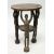 AN UNUSUAL AFRICAN HARDWOOD STOOL, the circular top supported by three figures with arms outstretched united by an under tier (faults), 50cm high, 36cm diameter.