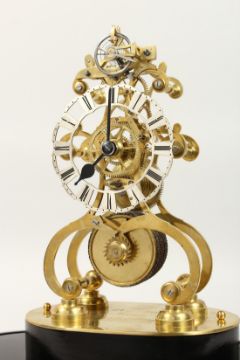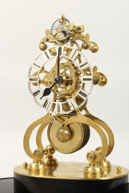 A RARE BRASS SKELETON CLOCK with Detached Lever Escapement, fusee movement