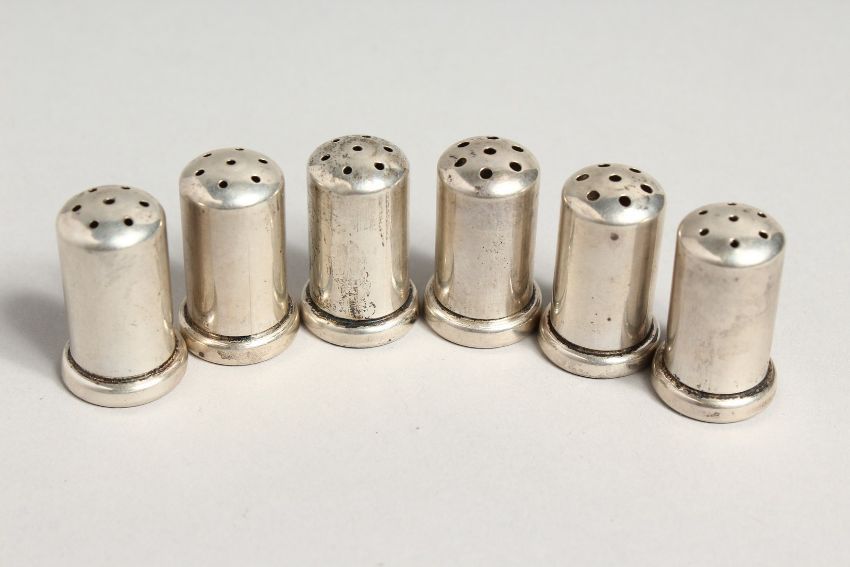 A SET OF SIX SMALL SALT AND PEPPERS