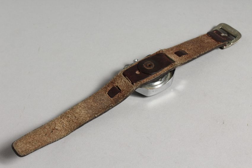 A MAN'S 1950'S WRIST WATCH with leather strap.