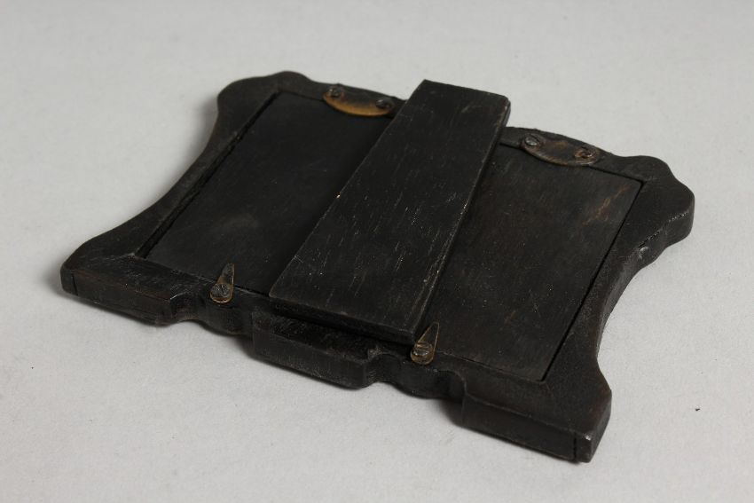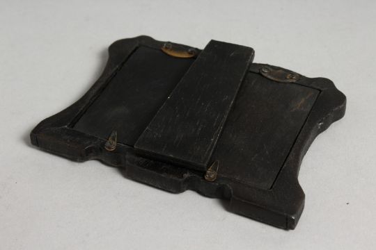 A MINIATURE SILVER DOUBLE PHOTOGRAPH FRAME