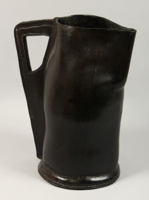 A GOOD LARGE LEATHER BOMBARD. 17ins high.