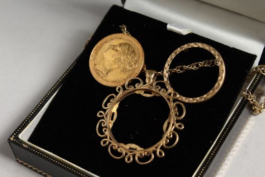 A VICTORIAN YOUNG HEAD SHIELD BACK FULL SOVEREIGN, 1845, in a mount on a chain.