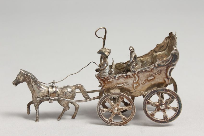 A CONTINENTAL SILVER HORSE AND CART. .925, 3.25ins long.