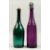 TWO EARLY COLOURED GLASS BOTTLE DECANTERS and stoppers. 12ins high.