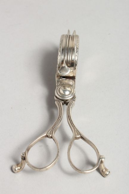 A PAIR OF GEORGE III SILVER CANDLE SNUFFERS, London, 1874. Maker I B.