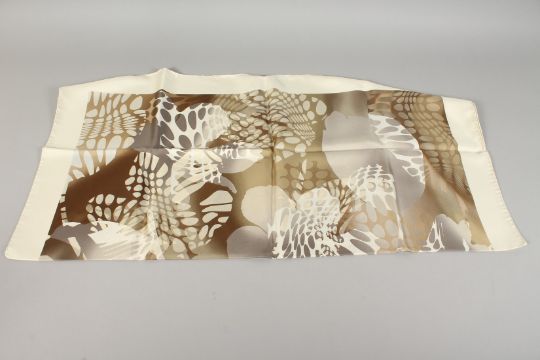 A SALVATORE FERRAGAMO SILK SCARF, multi coloured, beige and brown flowers..