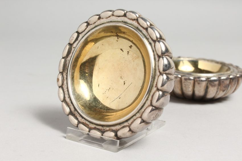A PAIR OF GEORGE III FLUTED CIRCULAR SALTS. 3.5ins diameter, London, 1805.