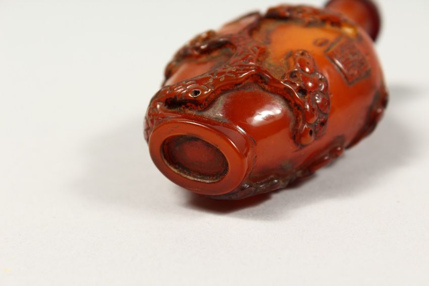 A CHINESE CARVED AMBER SNUFF BOTTLE